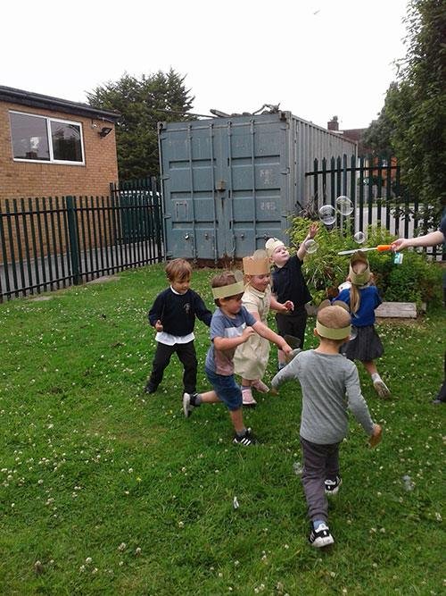 Then we had great fun seeing how far the children could throw the ‘javelins’ as well as playing a hide and seek game where the teddies had to listen to the instructions about what to find around the garden and finally a teddy bubble pop game!